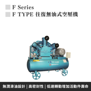 F系列氣冷往復無油式空氣壓縮機,曲軸箱內無潤滑油設
